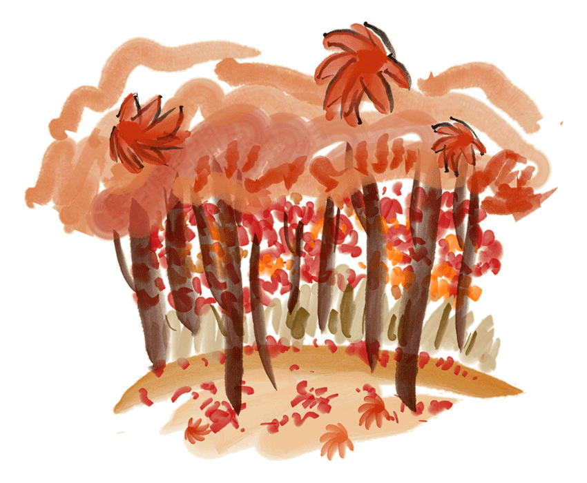 順著彎彎曲曲的,用石塊砌成的小路,可以到達寒冷的山嶺高處。在白雲凝聚的山間,隱隱約約地可以看出來有人住在那兒。因為喜愛這一片晚秋的楓樹林,所以把車子停下來,靜靜地觀賞。那些經過秋霜的楓葉,比二月裏的紅花還要鮮豔美麗呢!