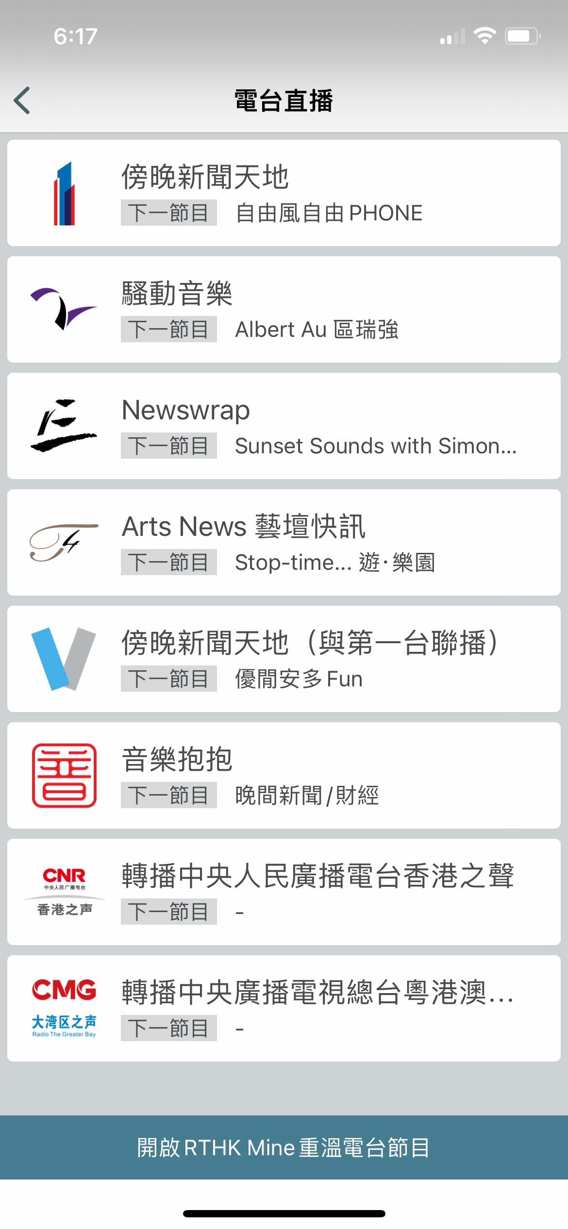 「RTHK隨身版」用戶需要透過 Wi-Fi 或手提電話數據網絡,才可以收聽香港電台的電台直播。如 「RTHK隨身版」未能播放電台直播,請檢查用戶的Wi-Fi或手提電話數據網絡連接是否正常。