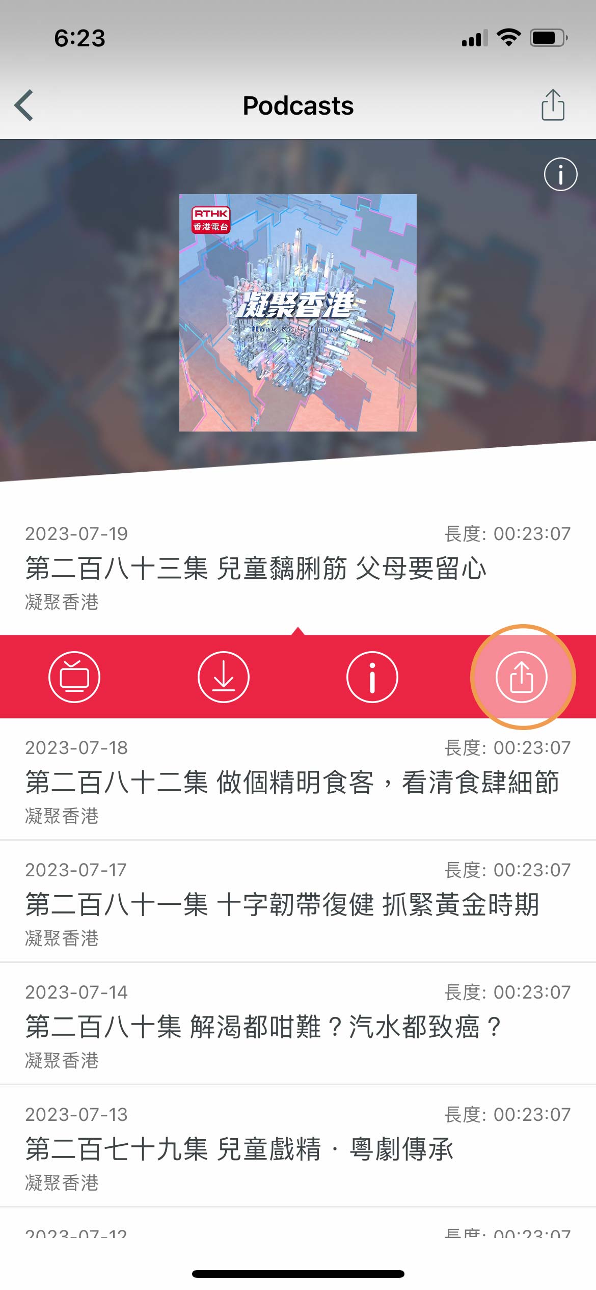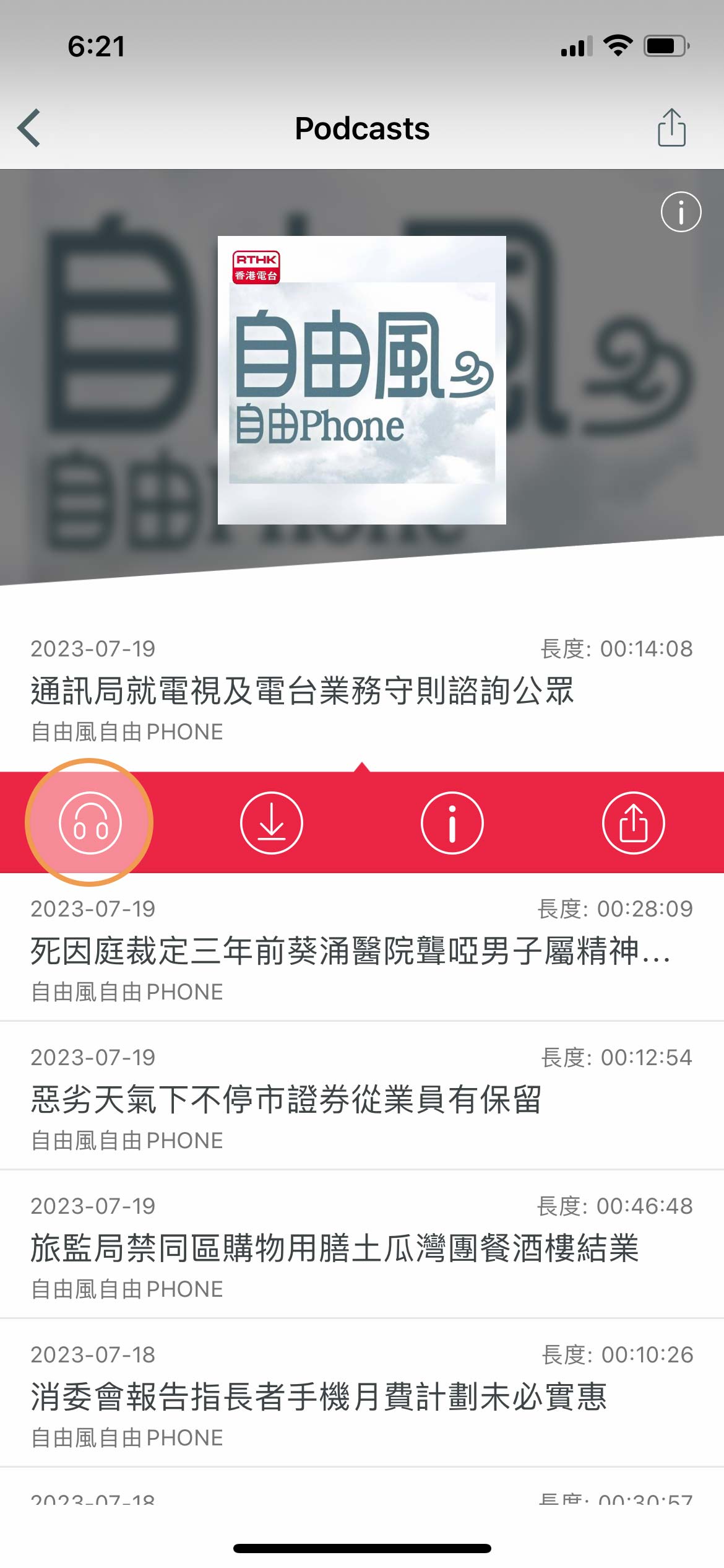 」則會將有關內容儲存到用戶的設備中,當用戶的裝置沒有連接 Wi-Fi或流動數據網絡時,仍可收看或收聽有關 Podcast 節目內容。