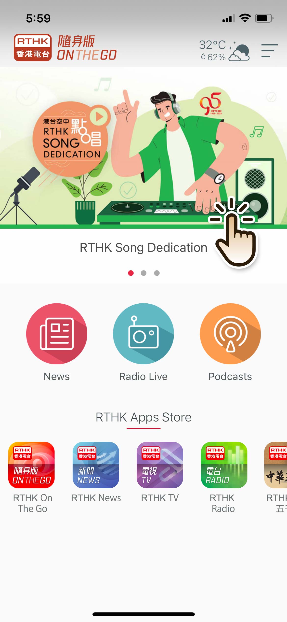 RTHK On The Go (RTHK OTG) is providing Radio Live, Instant News and Podcasts all rolled into one! Enjoy handpicked RTHK fascinating programmes and activities on our website and mobile apps.