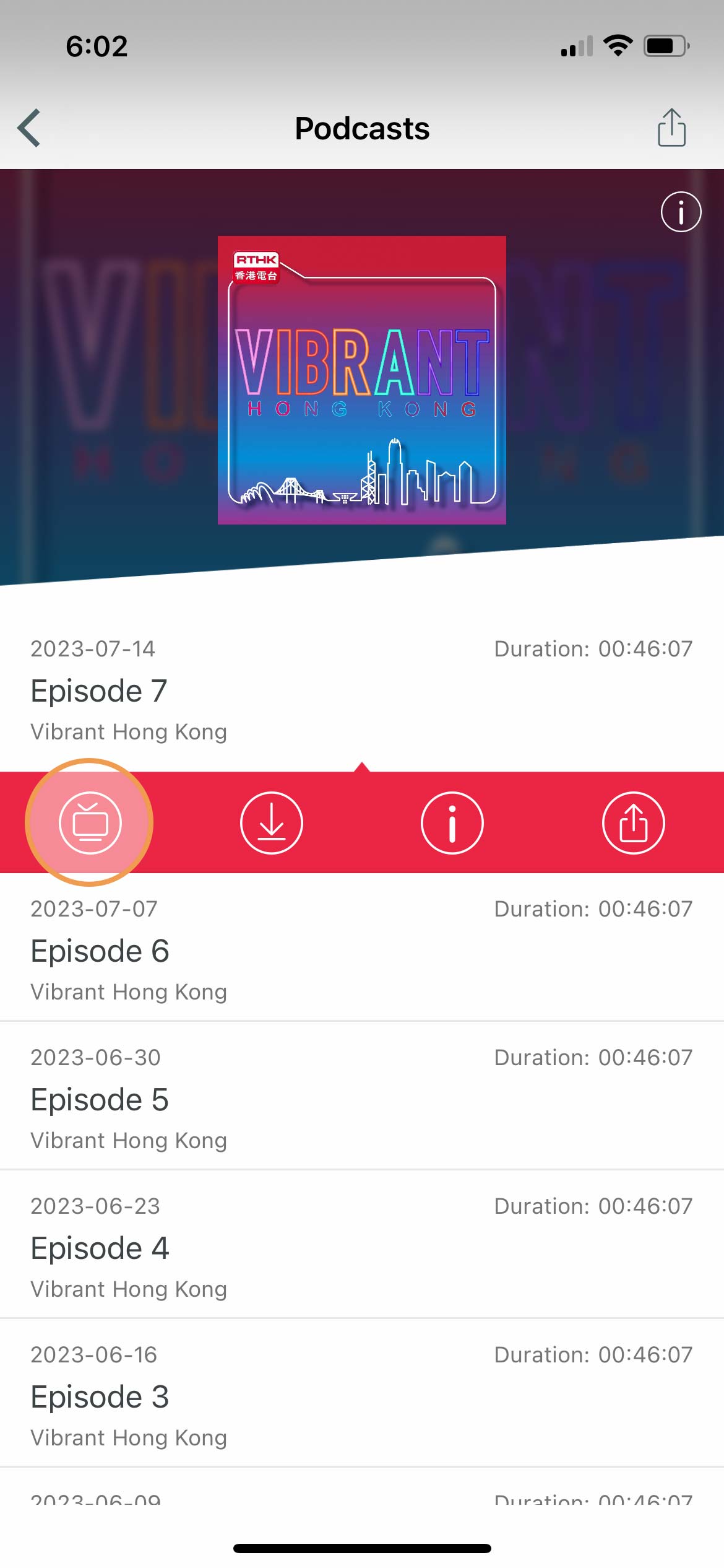 ": the podcast programme content will be saved in "My Downloads". Here you can watch/listen to the podcast programme even if the devices are disconnected from Wi-Fi or mobile data networks.