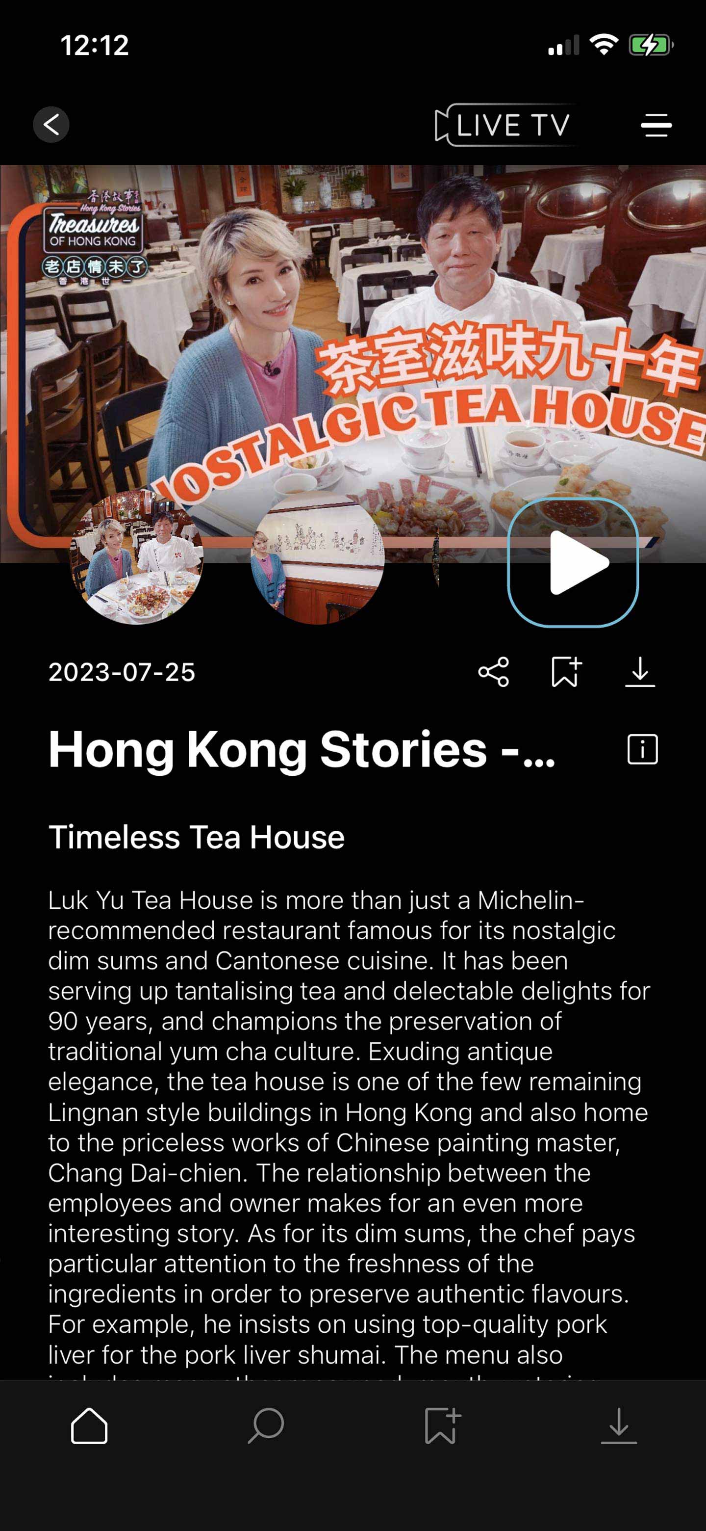 Except for some programmes which are not available for download, users can click the “Download“ button on the episode page to download the episode to “My Downloads“ in the app, so that users can watch it anytime.