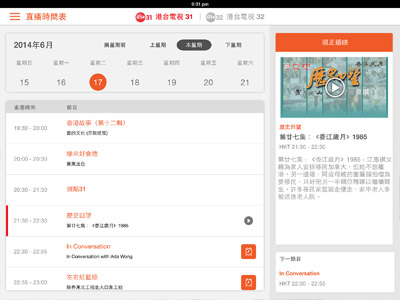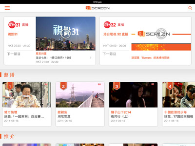 提供港台電視31及32的網上直播。每日會更新網上最多人收看的電視節目及誠意推介。 |