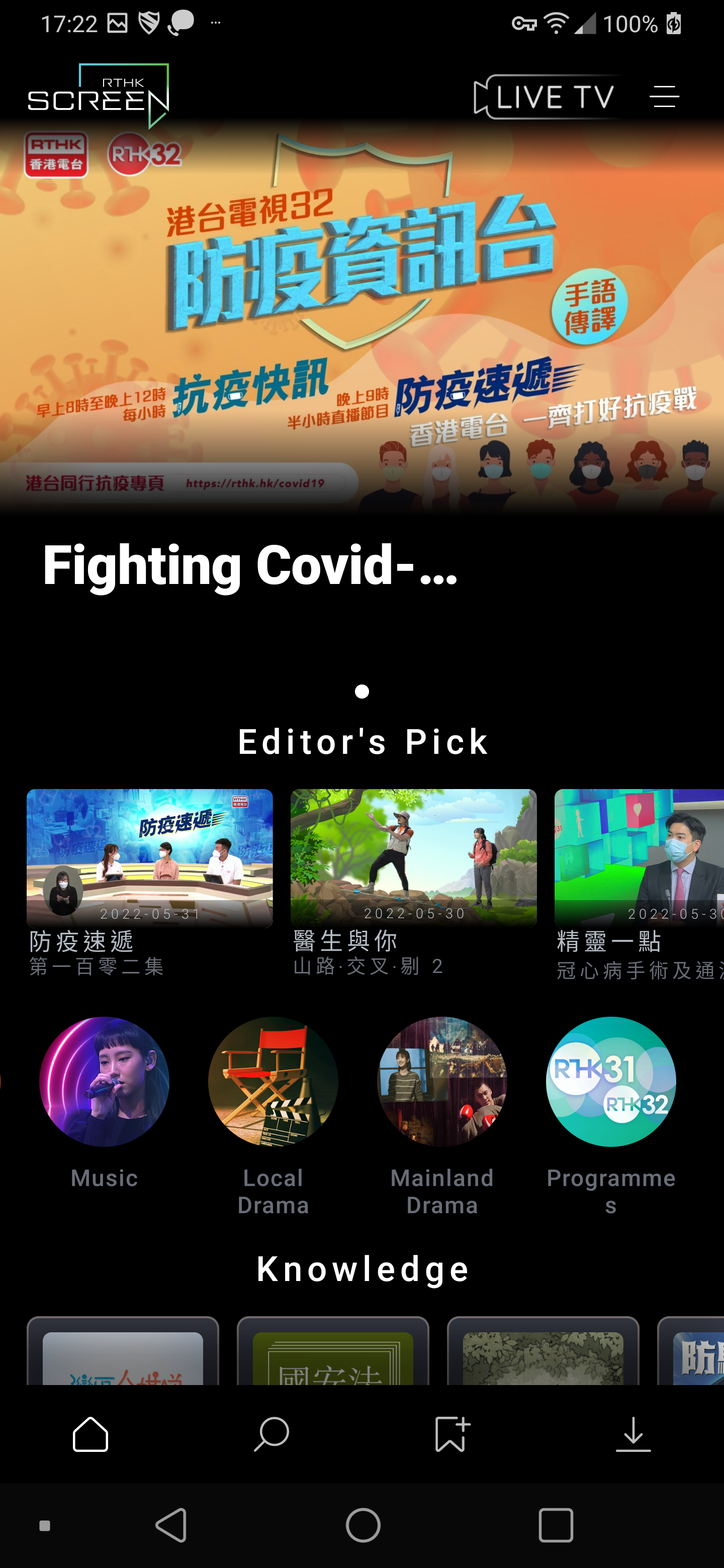 With the new design of the landing page, RTHK TV programmes are displayed by content category, making it easier for users to find their favourite programmes to watch.