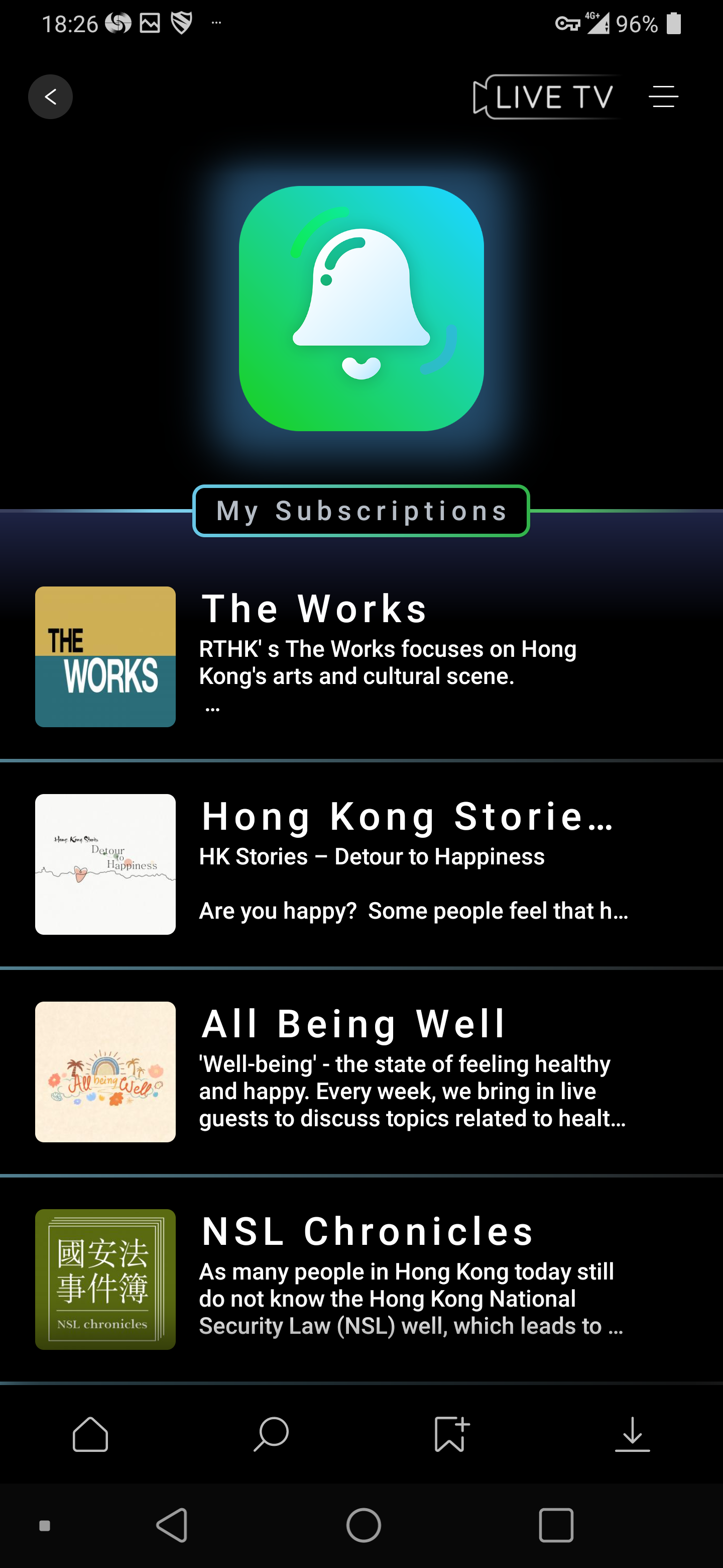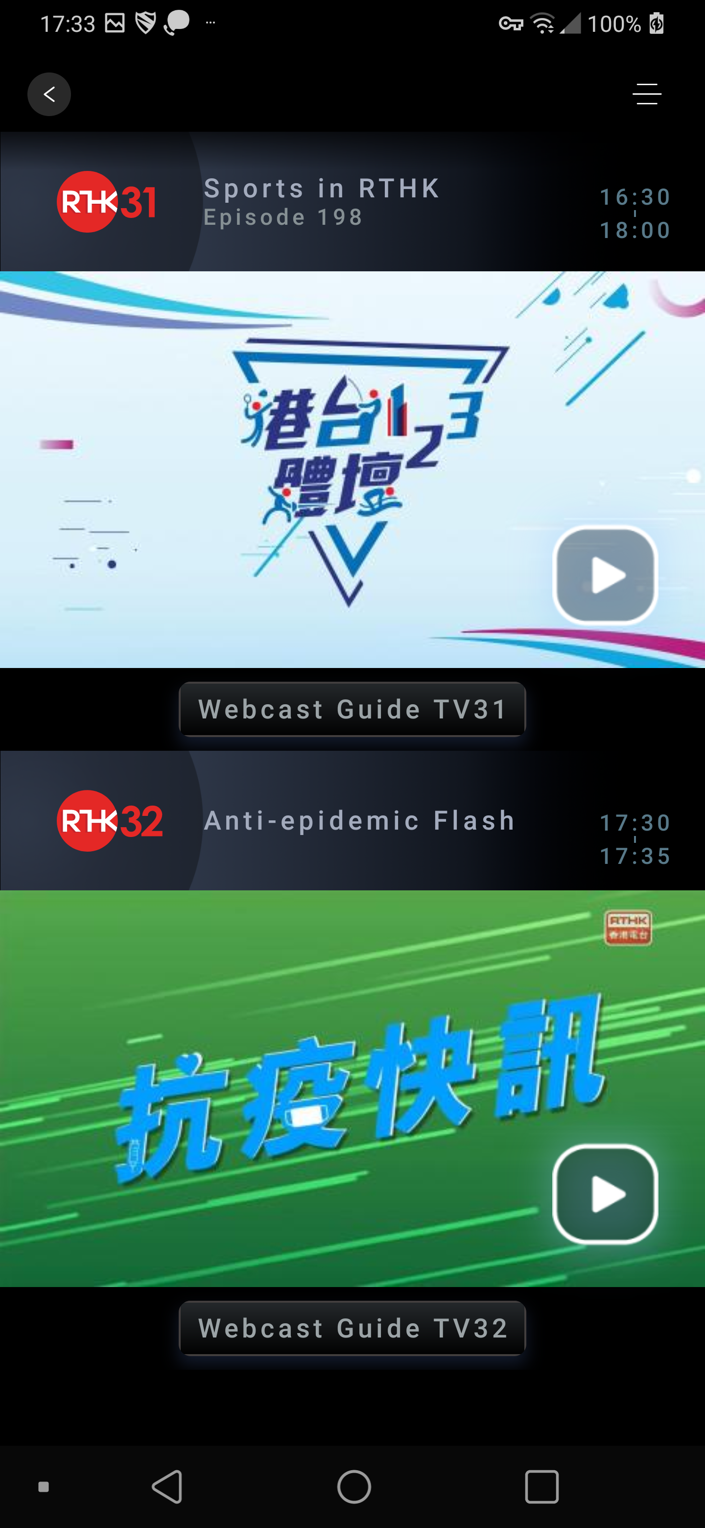 With this app, user can watch RTHK TV 31, TV 32, TV33, TV34 and TV35 programmes live webcast on the internet. Channel 31 live webcast a vast array of knowledge, inclusion, current affairs, health, culture, sports, music, local drama and Mainland drama. Channel 32 will live webcast important press conferences and useful information.