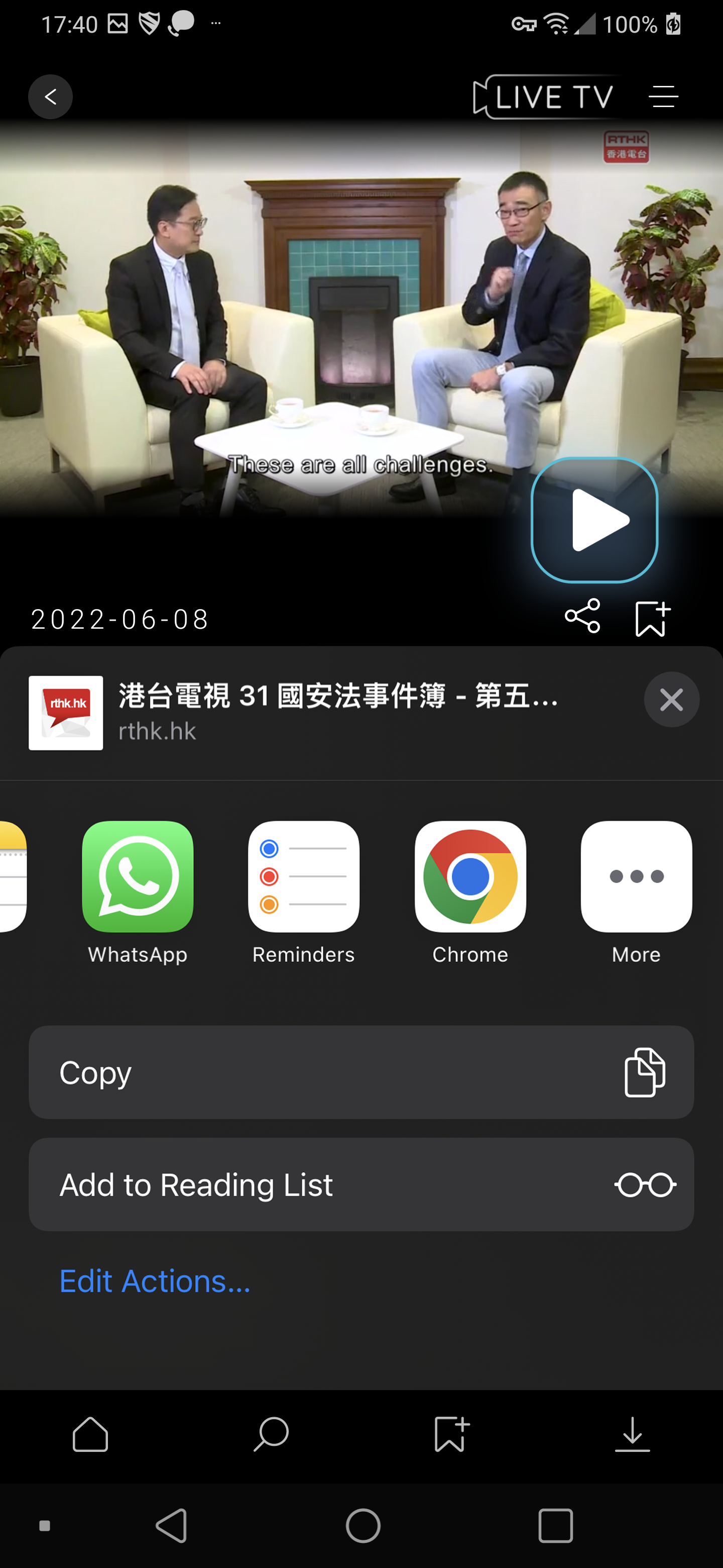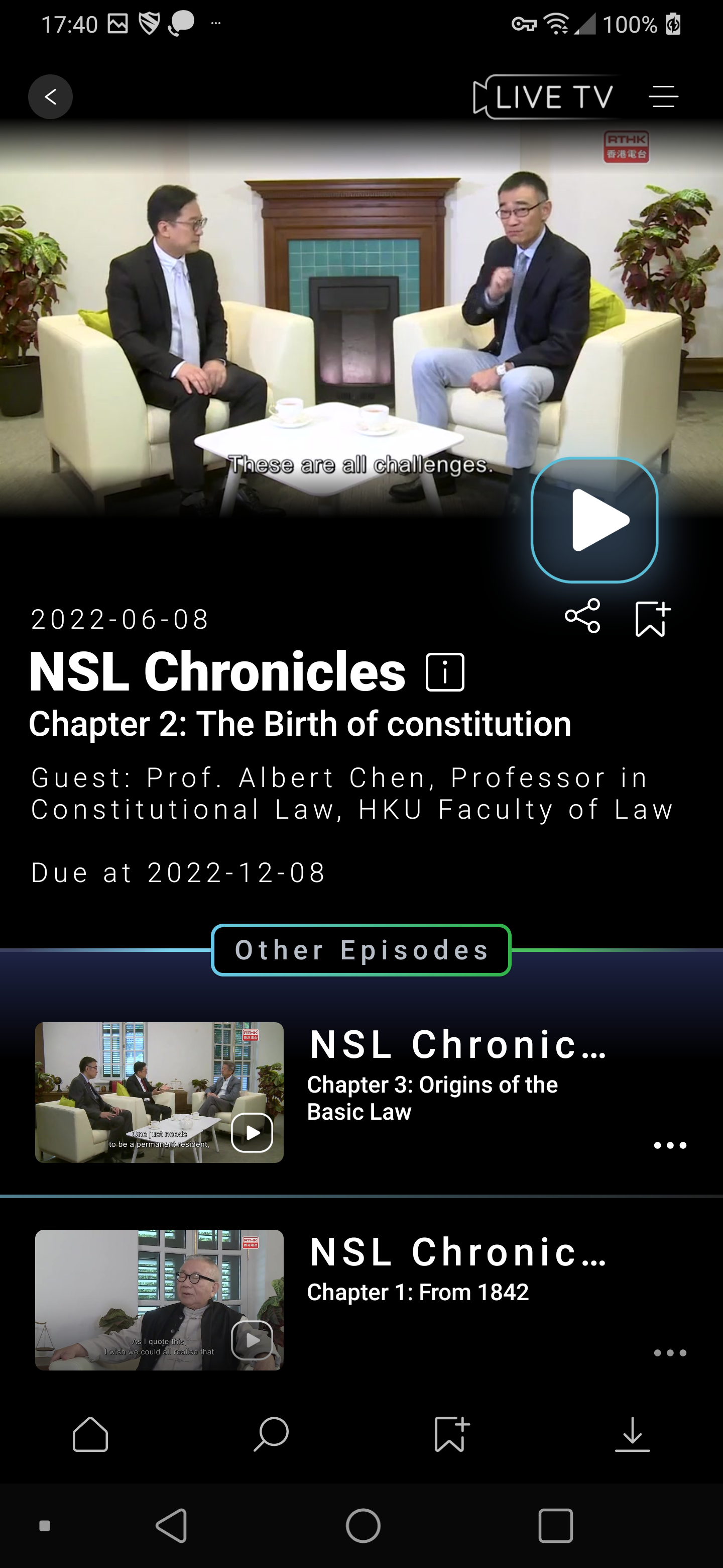 Simply click on the play button and enjoy video in RTHK SCREEN with Wi-fi, 4G and 5G connections.