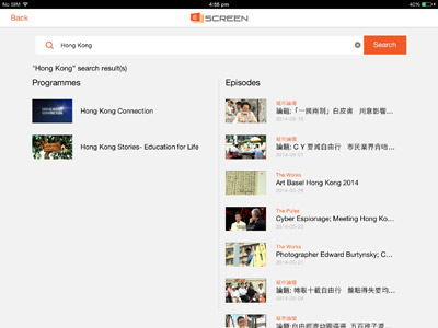 User can search TV programmes at RTHK SCREEN by "Search" function. |