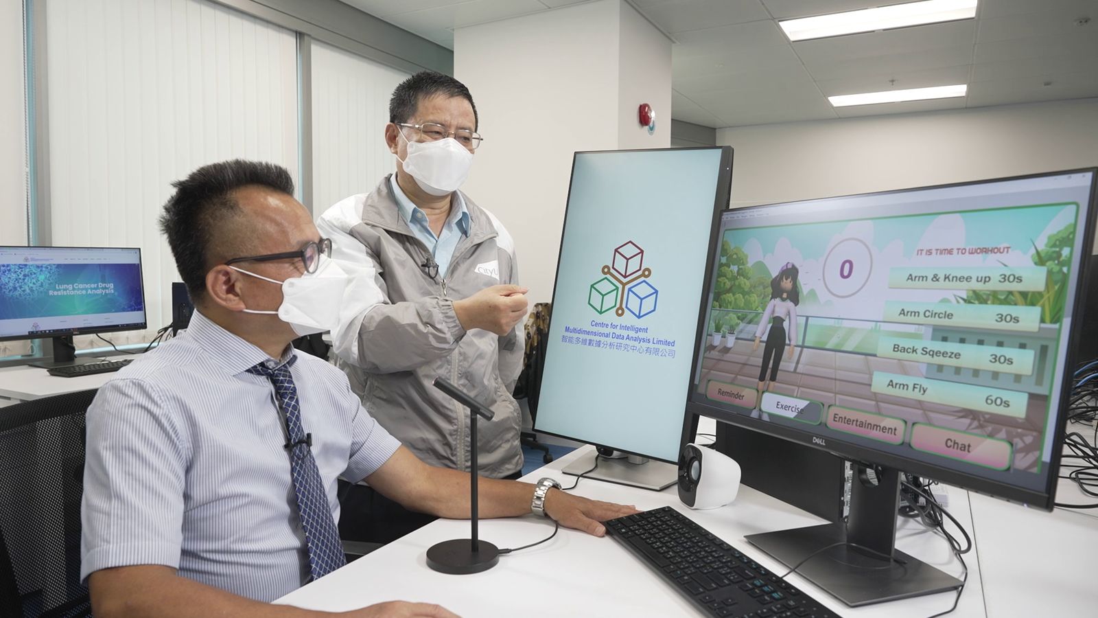香港城市大學成立的智能多維數據分析研究中心,致力研發高科技和拓展應用,集合各地的科研專才,將多維數據的學術研究成果融入生活。中心研發的長者輔助軟件CIMDA Care,利用先進人工智能技術,進行人體運動姿勢識別、音樂分析和虛擬人物舞蹈創作,可以提醒長者食藥、做運動、提供娛樂、和可與長者傾談。中心亦開發了人體姿勢評估及體育課評分系統,透過影像追蹤,可以準確評估人體動作,軟件可用於學校或機構的運動訓練。團隊希望研究可以托展至更多體育項目的應用。